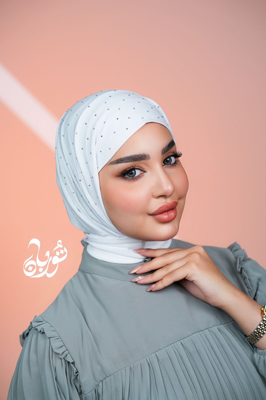 حجاب طباقة خامة ليكرا مرصع بالستراس المنثور